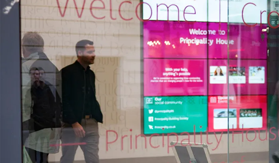 Principality's centrally-controlled system educates visitors and staff about the business and its services. The new equipment is user-friendly and requires no IT support or extensive training.