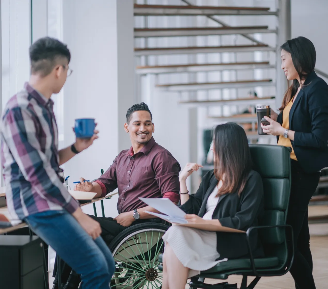 Many work environments must respond to continual change so that employees can work in different spaces daily regardless of disabilities. Audio-visual equipment is ready on-demand, making the workplace wholly available to all co-workers. This includes setting up dedicated video conferencing suites with circular meeting tables to ensure they are accessible to all colleagues.